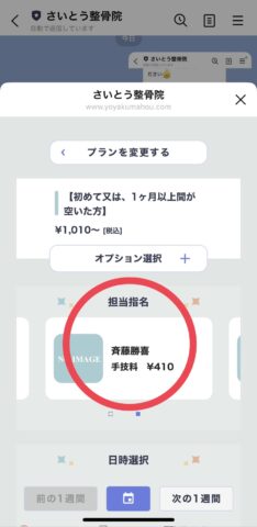 4.施術者の選択(横にスライドすると選択できます)